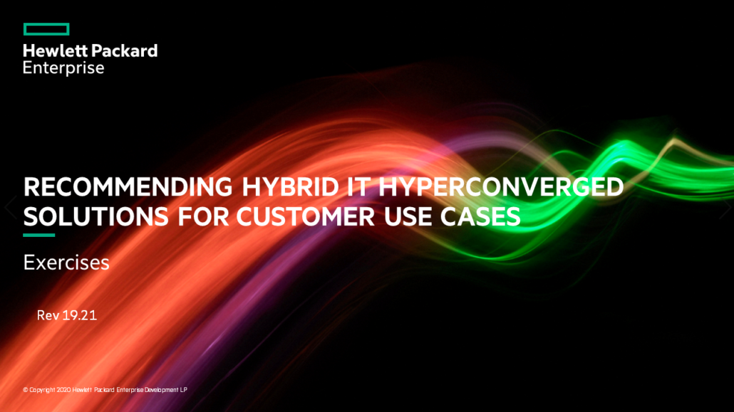 Designing HPE Hybrid IT Solutions MODULE 7 – Recommending Hybrid IT Hyperconverged Solutions Module 7 – Exercises